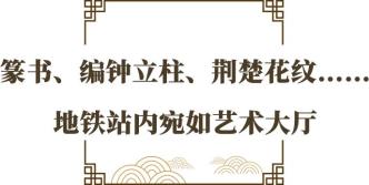 记者从位于湖北美术馆、省博物馆之间的A出口进入地下一层的站厅层,首先映入眼帘的是大厅内两侧分布的30多根形似编钟的大理石立柱,宏伟大气。