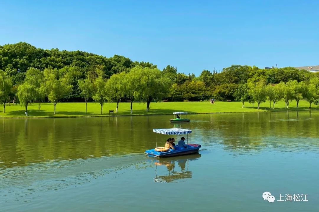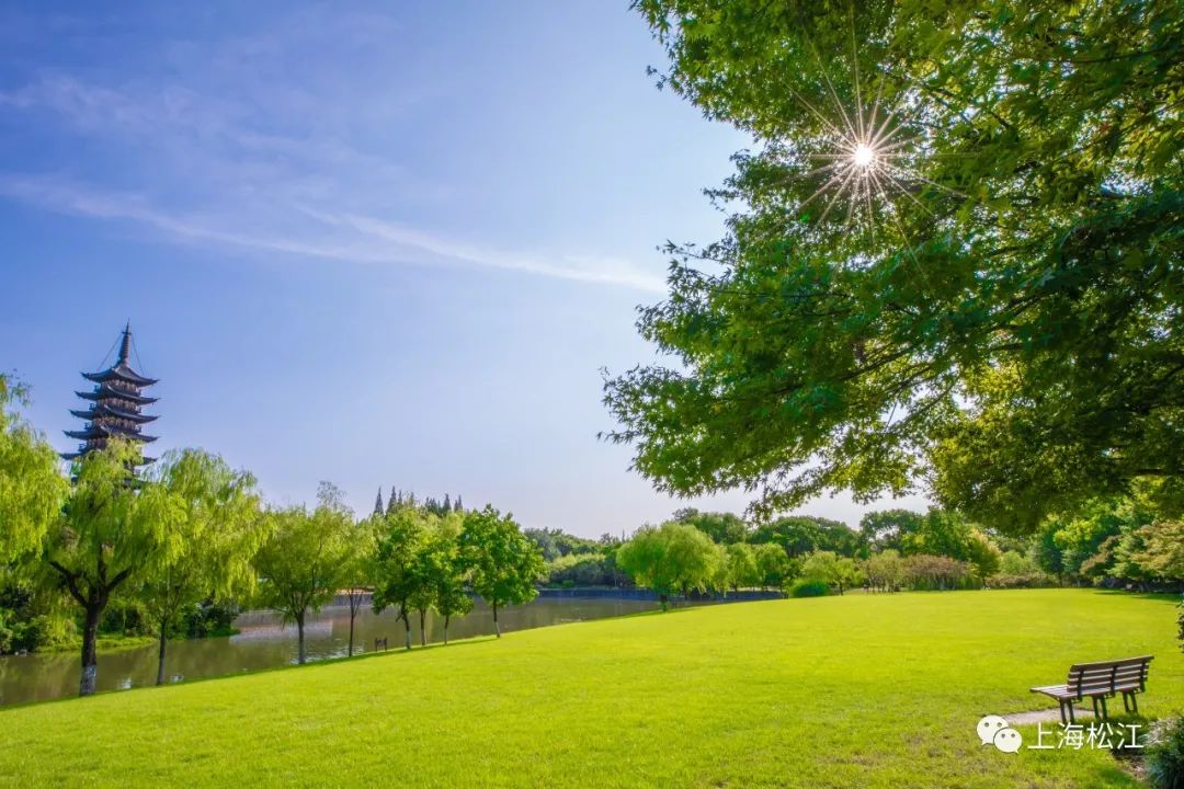 更新过的大草坪焕然一新,远远望去,仿佛铺设了一层碧绿色的地毯。游客或在树荫下闲庭信步,或坐在草坪上享受休闲时光,近距离感受大自然的气息。举目望去,潋滟湖光,方塔园的美景近在咫尺。