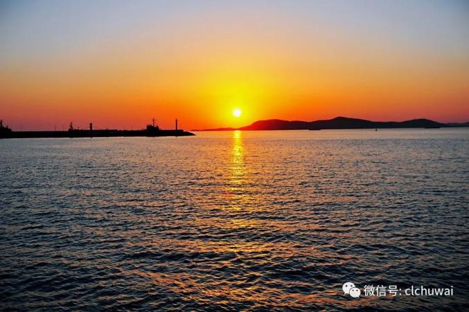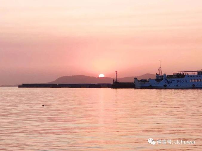 太阳在远处的山上渐渐下落,依依不舍,将海水渲染成了玫瑰的颜色。