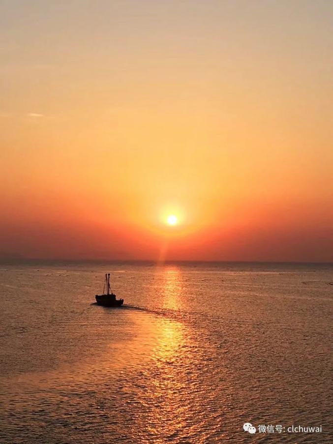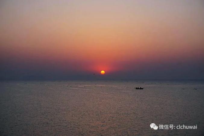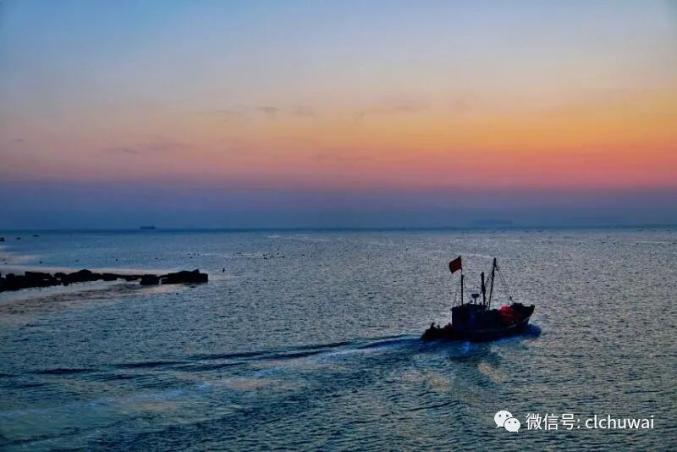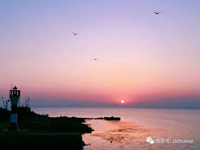 天边已渐渐变成柔和的淡紫色,几只海鸥飞过,呼唤出太阳。