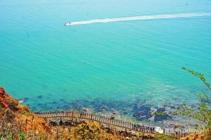 走上木栈道,左边是陡峭的悬崖,右边是抚媚的海水,一刚一柔,对峙千年,喜欢矗立在海上的岩石,让贝壳有了依靠。