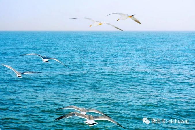 成群的海鸥在悬崖上盘旋,像蔚蓝天空中黑色的棋子。