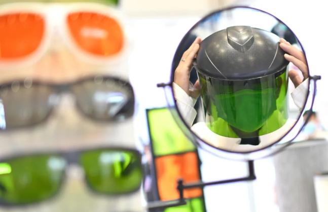 华工科技展示的三维激光雕刻机,可以在可乐瓶上刻字。
