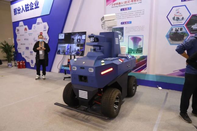 现场展示的小驴机器人,可实现自动驾驶、人脸识别、车牌识别等,可用于园区安防巡逻等领域。