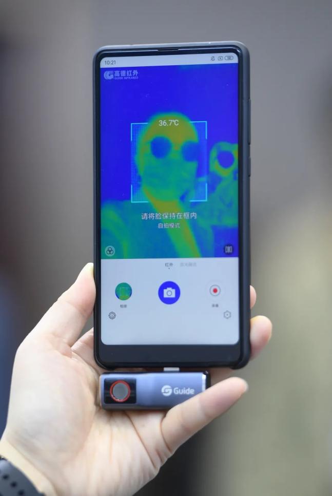 高德红外展出了手机扩展插件,可用手机摄像头自拍测温。